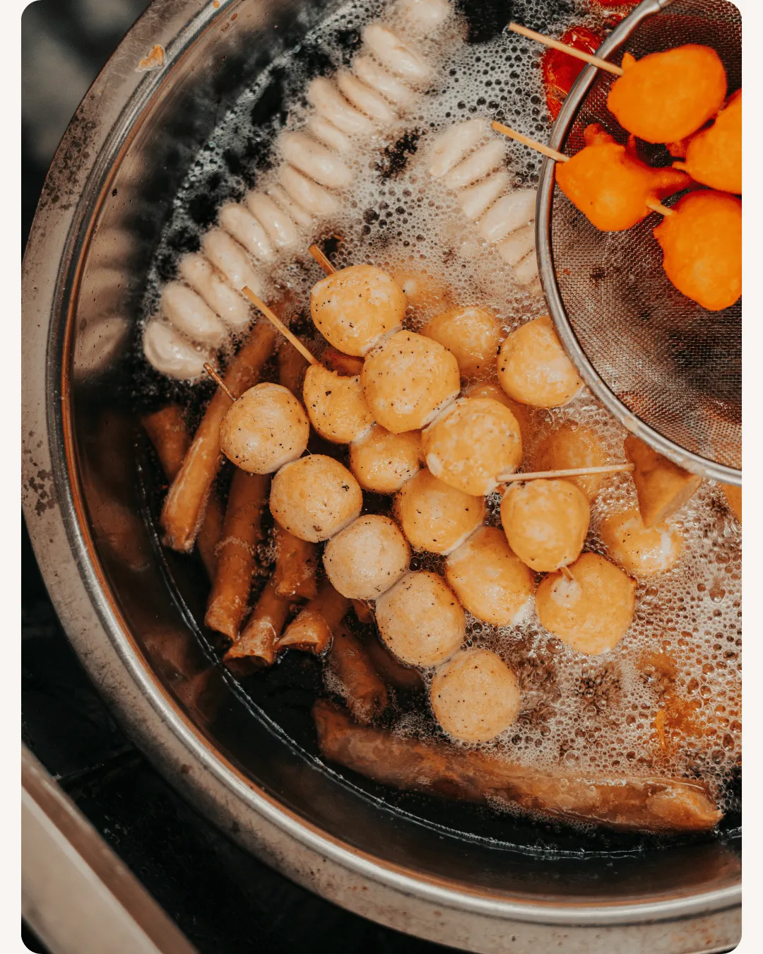 Enjoy street food favorites like fishballs, chicken balls, kikiam, and more.